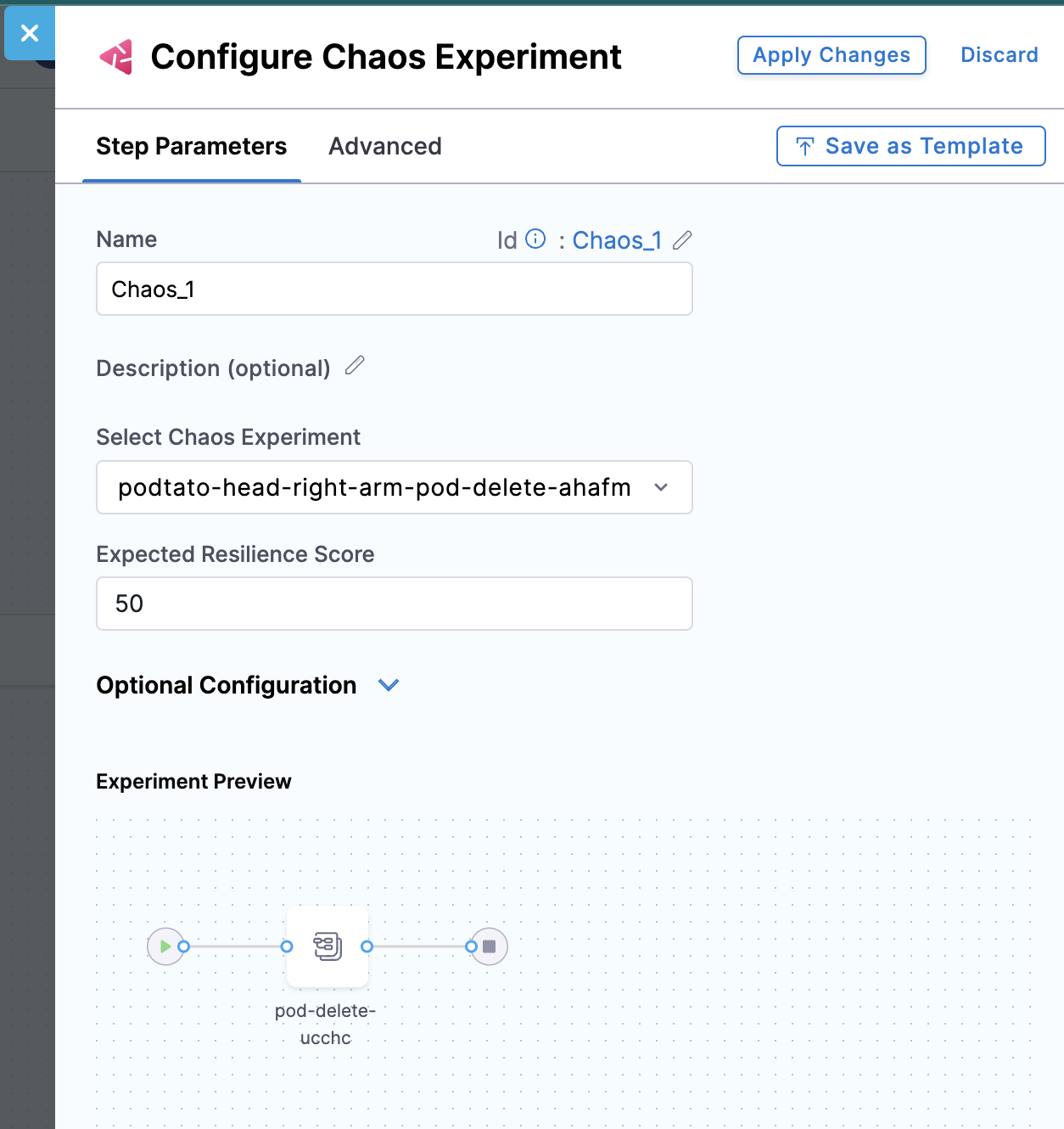 Choose from the list of chaos experiments, and click Add to Pipeline.
