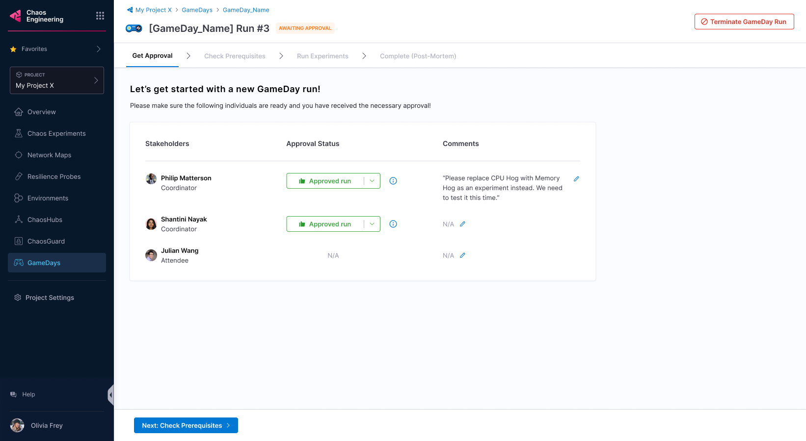 5. Once the stakeholders approve the GameDay run, you can proceed.