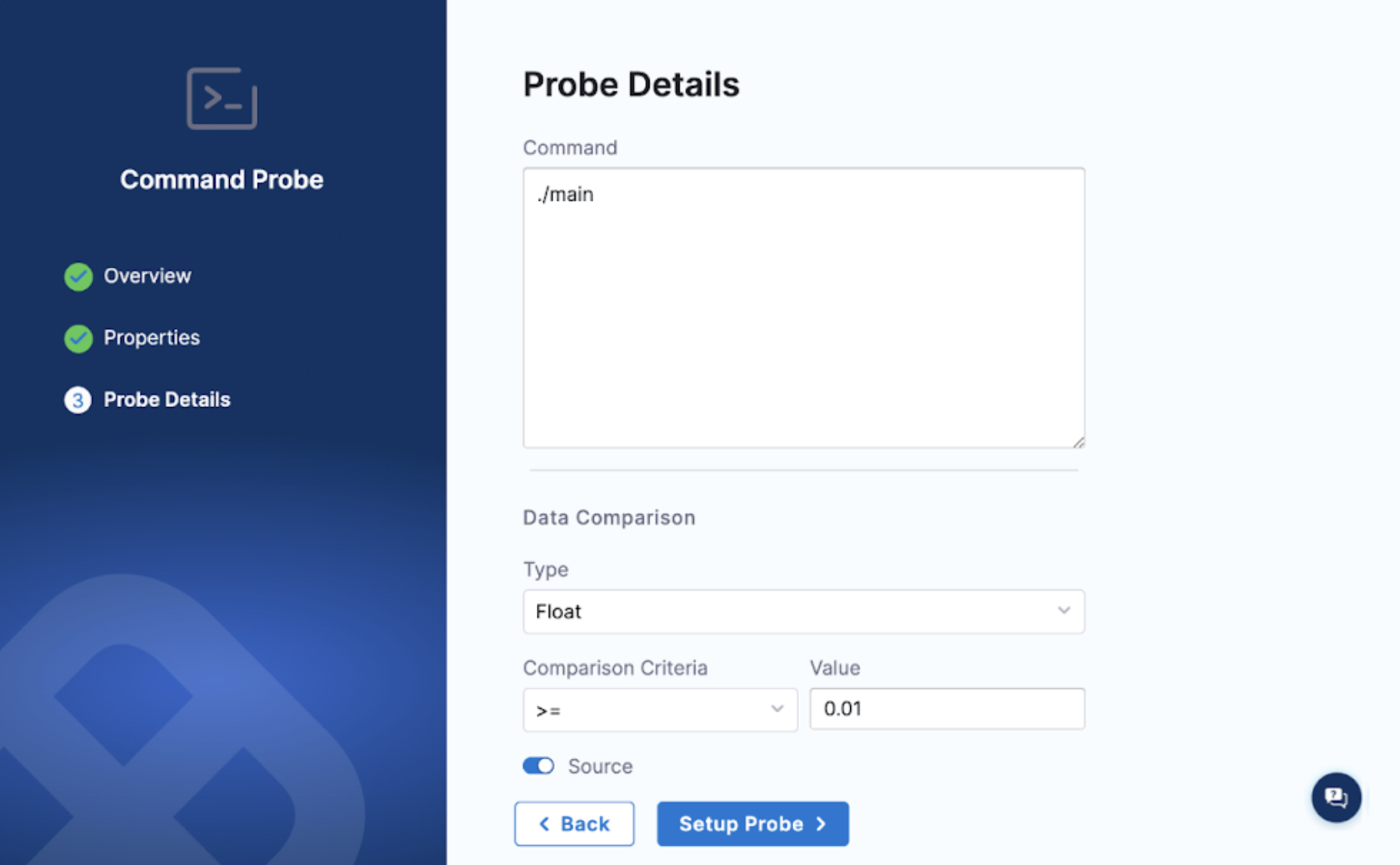 Create a new command probe, add the necessary details, and select Configure Properties.