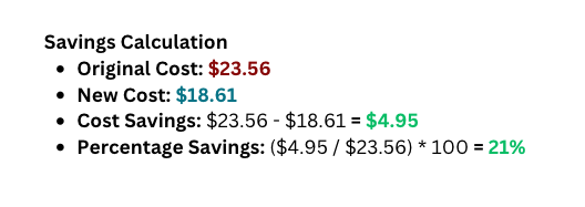 This results in a cost savings of approximately 32.76% compared to keeping all data in standard S3 storage (15.463 per month).