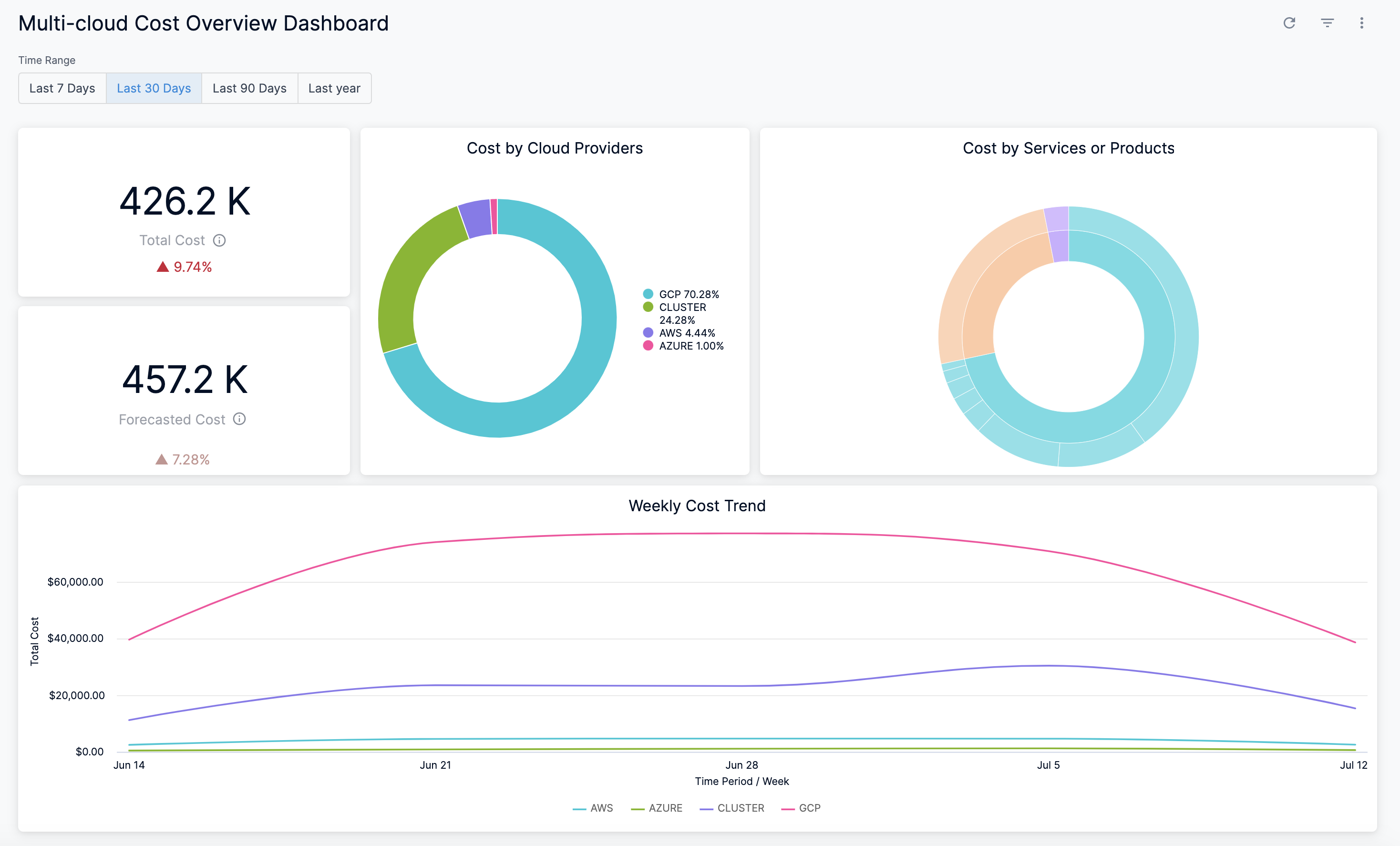 Perform the following steps to view the Multi-cloud Cost Overview Dashboard: