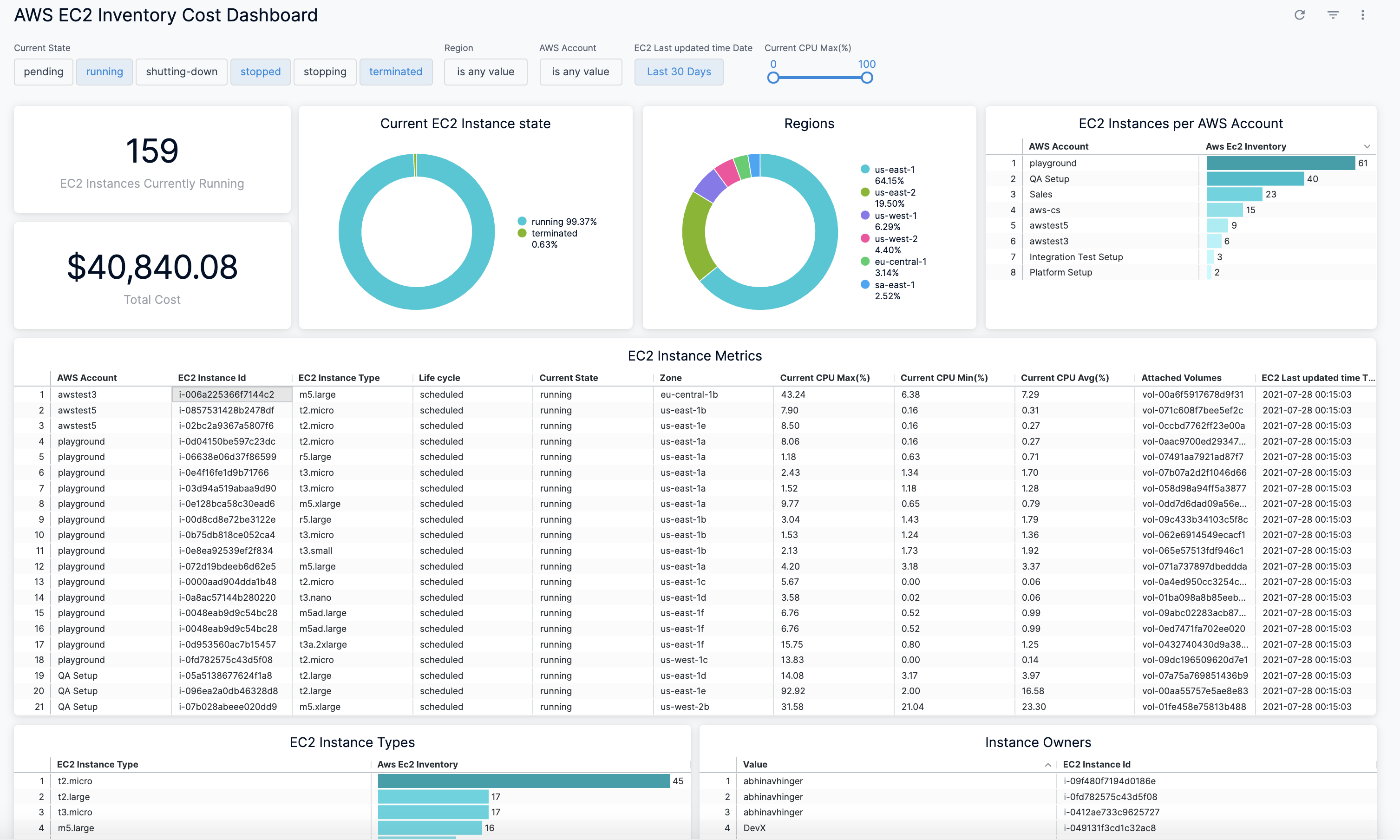 View AWS EC2 Inventory Cost Dashboard