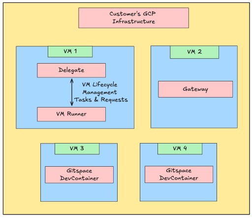 - Gateway routes tasks to corresponding Gitspace instances (VMs).