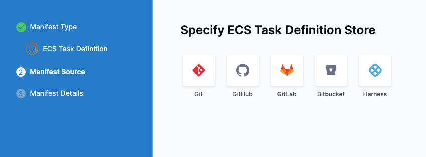 Harness supports Harness ECS service configuration overrides to assist in managing different ECS configuration files for different environments, infrastrctures, etc. With overrides, you can override the service configuration and Harness will fetch the file and compute the variables at runtime when the service is deployed into a given environment, infrastructure definition pair.