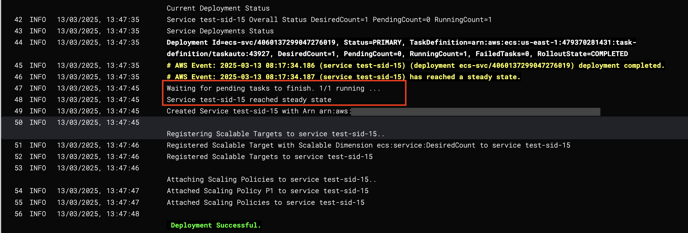 If ECS Service Auto Scaling is configured, it is attached to the last production service at the end of the rollback.