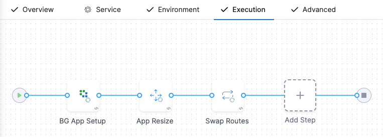Before performing a rolling deployment, the TAS Rolling Deploy step first verifies that the application exists in Tanzu. If the application does not exist, it deploys the application by using a Basic deployment strategy. If the application exists, it performs a rolling upgrade.