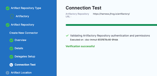 Select Continue to connect with Artifactory by using a Harness Delegate.