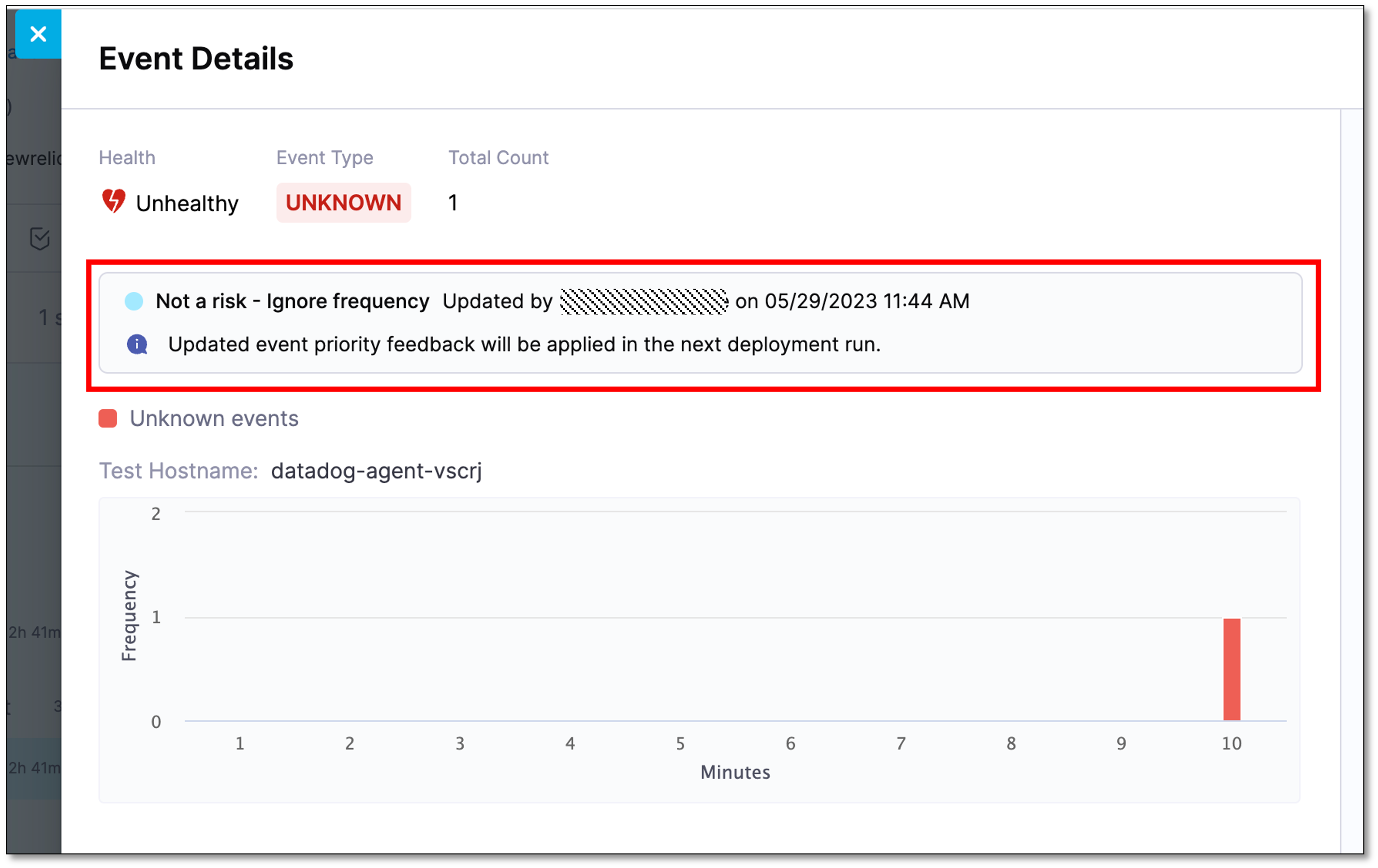 • Not a risk - Ignore frequency: These logs do not impact the verification result and will be ignored during the verification process. Also, they are ignored by the Harness during future verifications.