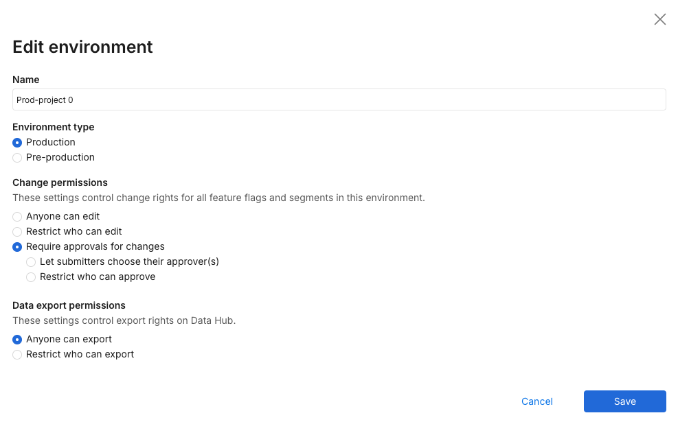 Split supports change control on segment and feature flags objects. If change control is enabled in your environment, then API calls to modify these objects directly without creating a change request returns a 403 stating that Approvals are required, for example: