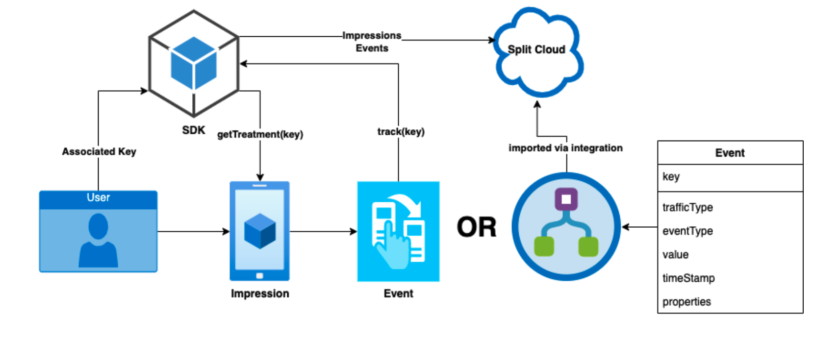 • It cannot be stressed enough how important it is to ensure that the key used in the event records matches the key used in the getTreatment() SDK calls. If they do not match then metrics cannot be calculated properly.