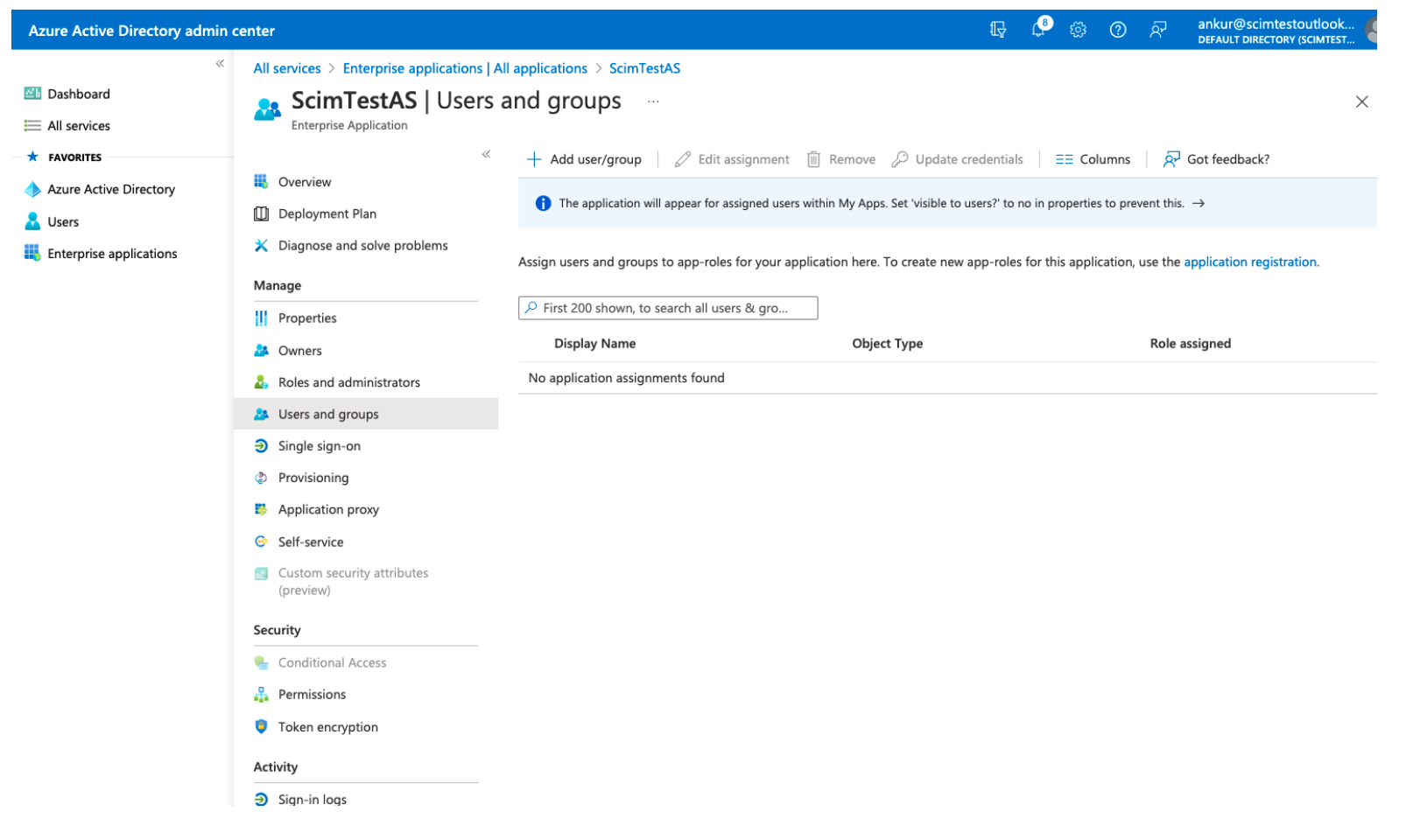 Only an Azure administrator can do the following setup on the Azure’s Split Enterprise app. The group name Administrators is a reserved keyword in Split and cannot be overridden. It must have at least one member.