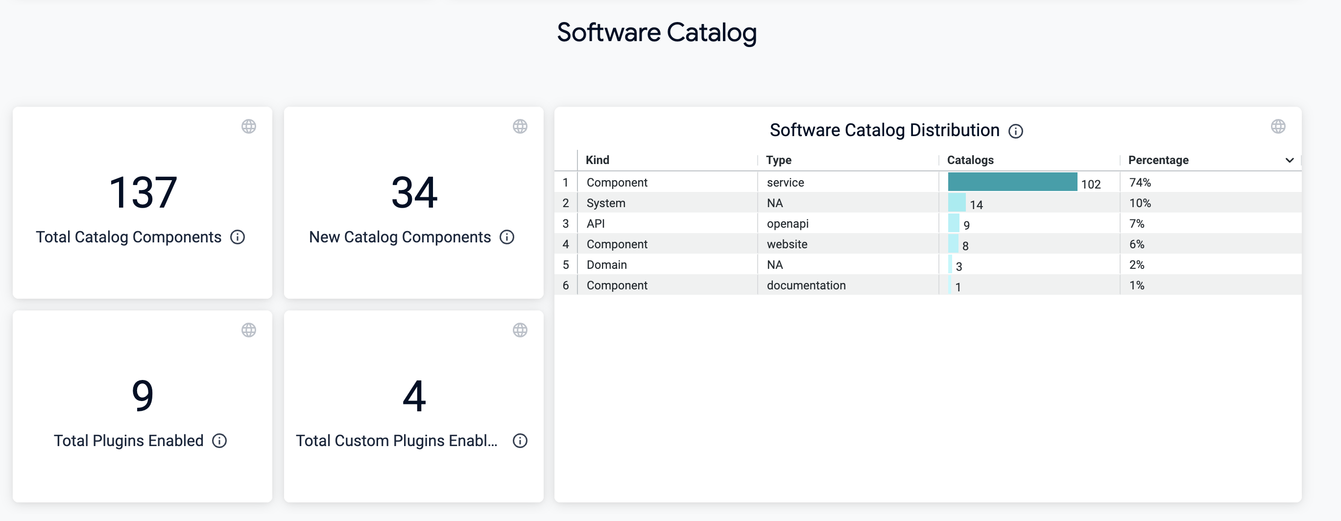 We provide an out-of-the-box adoption dashboard to help you with tracking Harness IDP adoption inside your organization. You can find this Dashboard under Custom Dashboards.