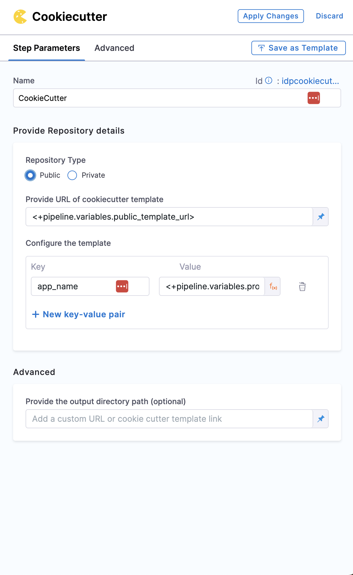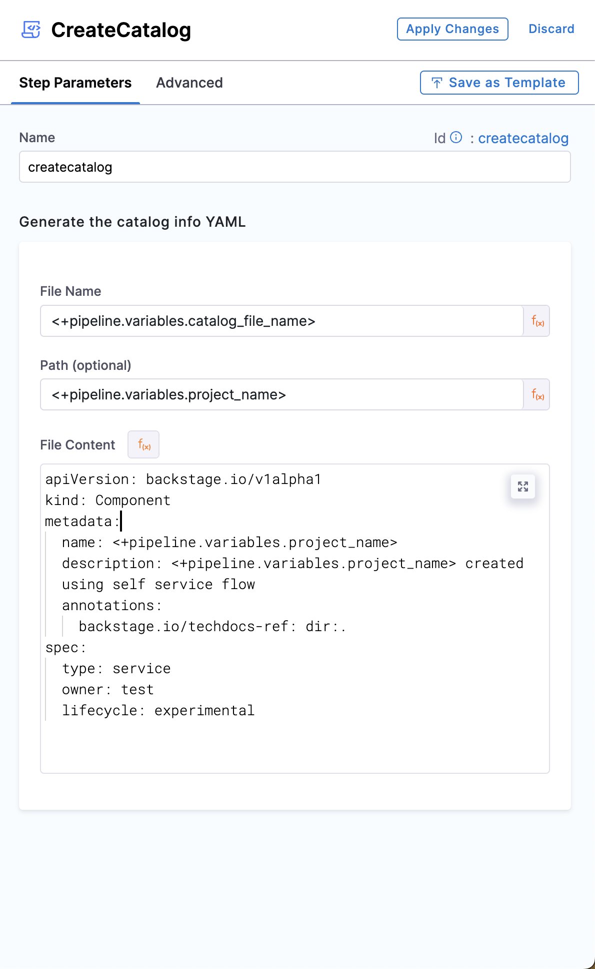 workflow.yaml, under thestepsproperty field, setshowOutputVariablestotrue. - Define pipeline output variables under the