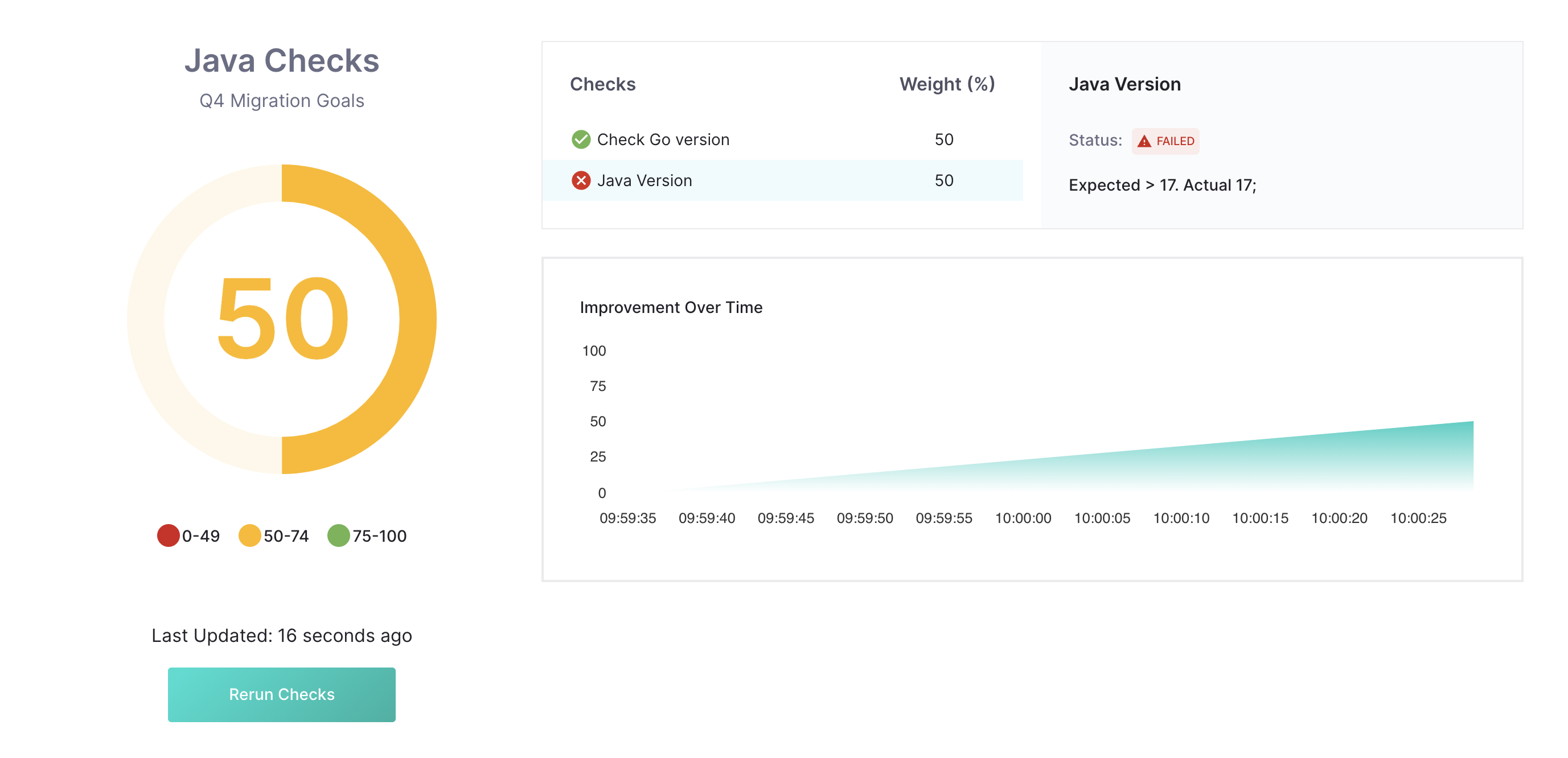 In this tutorial we will be using Scorecards for tracking and driving migrations. Recently we have introduced new Data Points for git based Data Sources to extract information from files using regex patterns. In this tutorial we will be building some custom checks using these Data Points to track library and language versions from the contents of metadata files.