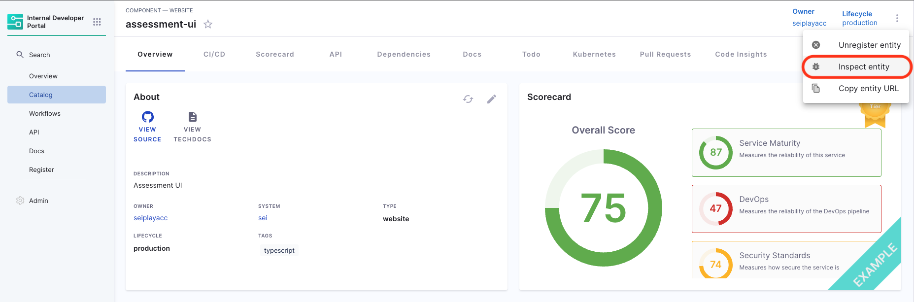 Catalog -> Software Component -> Inspect Entity -> Raw YAML