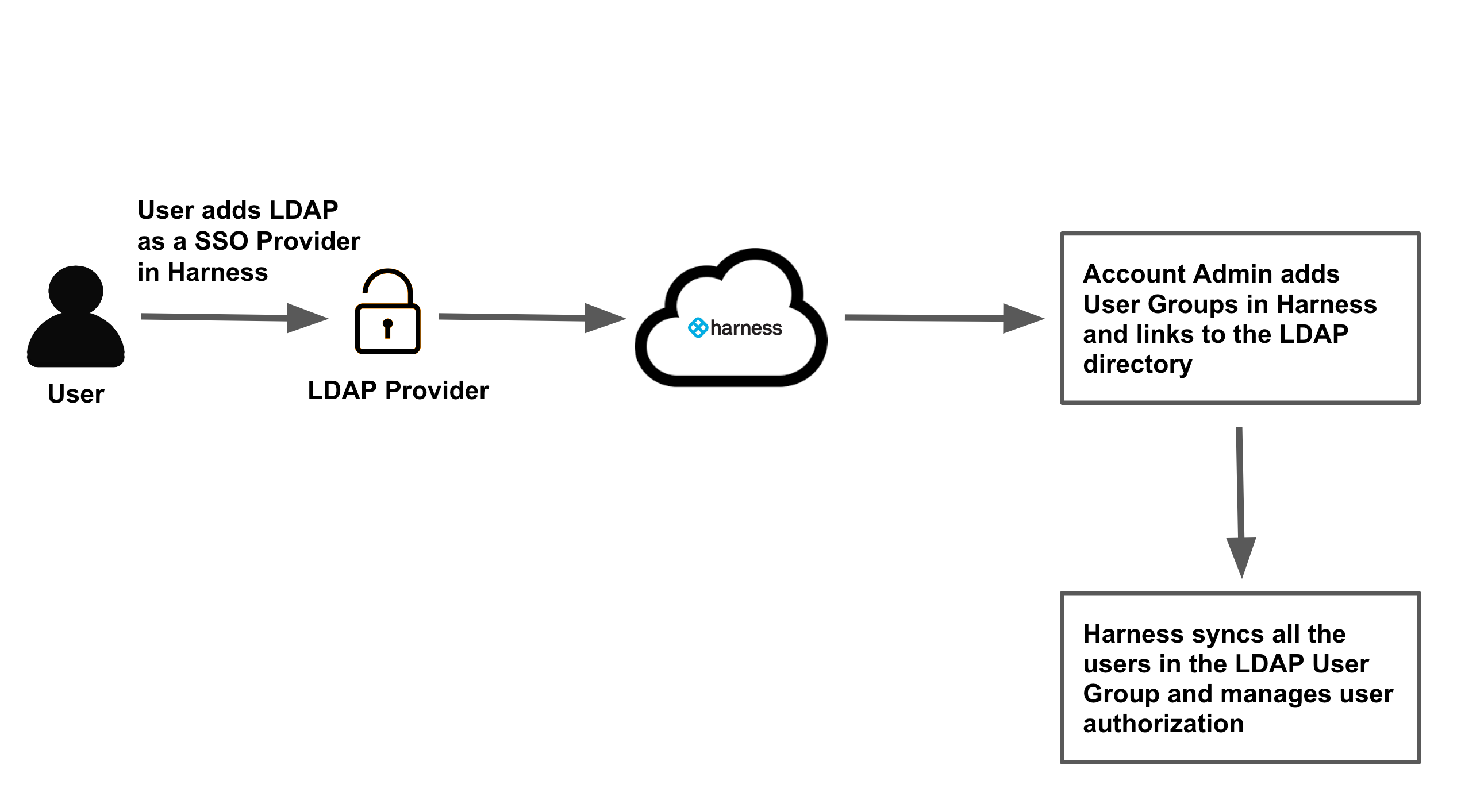 Harness supports Single Sign-On (SSO) with LDAP implementations, including Active Directory and OpenLDAP. Integrating Harness with your LDAP directory enables you to log your LDAP users into Harness as part of Harness' SSO infrastructure.