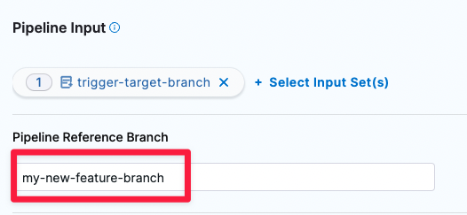 When Git Experience is enabled for your pipeline, the Pipeline Input tab includes the Pipeline Reference Branch field. This field is set to <+trigger.branch> by default. This means that any build started by this trigger uses the pipeline and input set definitions in the branch specified in the webhook payload.