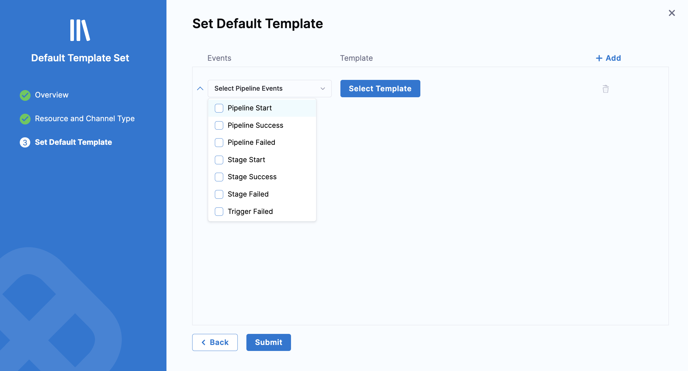 Select one or more pipeline events from the Select Pipeline Events dropdown.