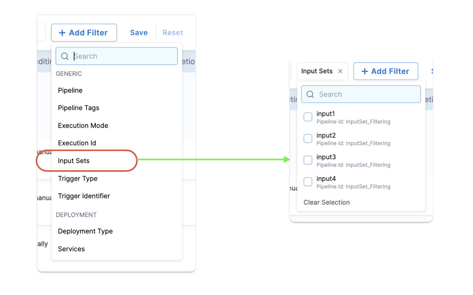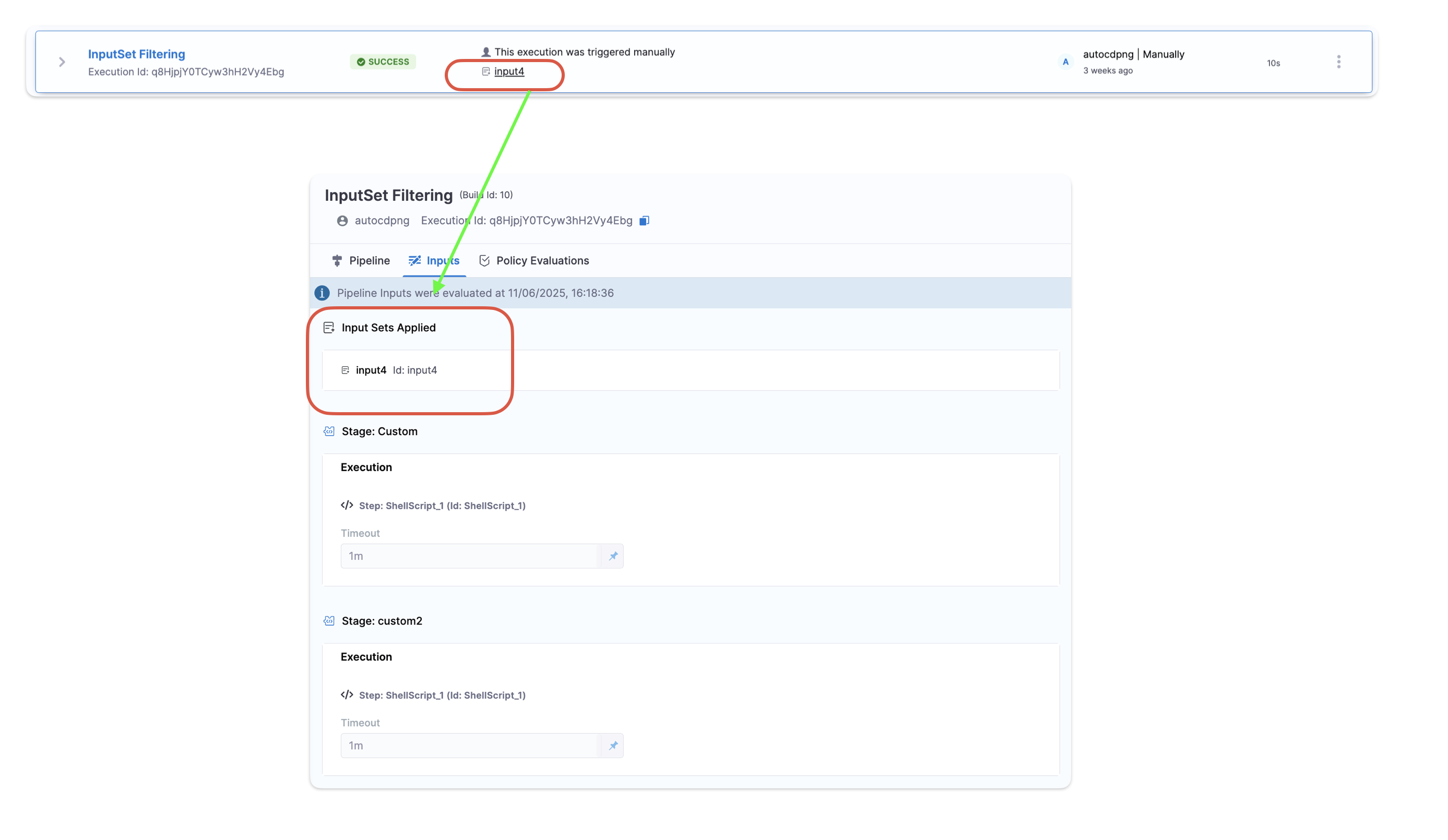 You can now view and filter pipeline executions based on the input sets used.