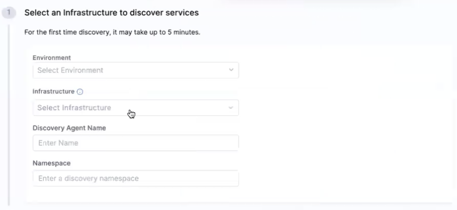 1. Provide the Environment, Infrastructure, Discovery Agent Name, and Namespace.