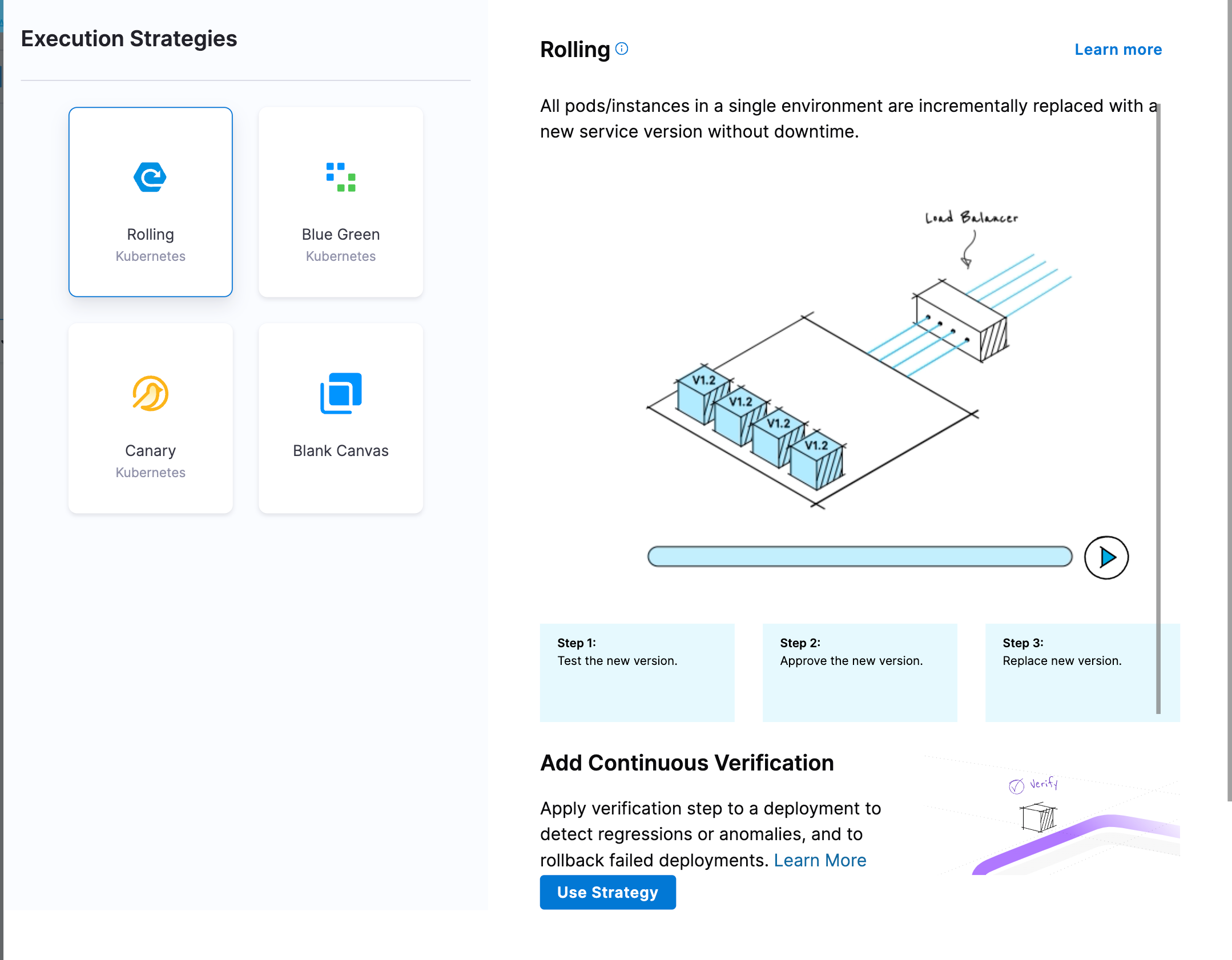 Select the type of deployment this stage must perform. For this example, select Kubernetes. The deployment type is how your service will be deployed. For example, using Kubernetes, Native Helm, Serverless, etc. Select the platform for your deployment. When you select a platform, its specific settings open.