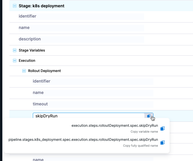 You can use expressions (also called Harness expressions, variable expressions, or sometimes Harness variables) to reference Harness input, output, and execution values. These values represent settings, variables, and other data that exist in the pipeline before and during execution. These can include environment variables, secrets, pipeline/stage/step identifiers, and more. You can also add your own variables and use expressions to reference them.