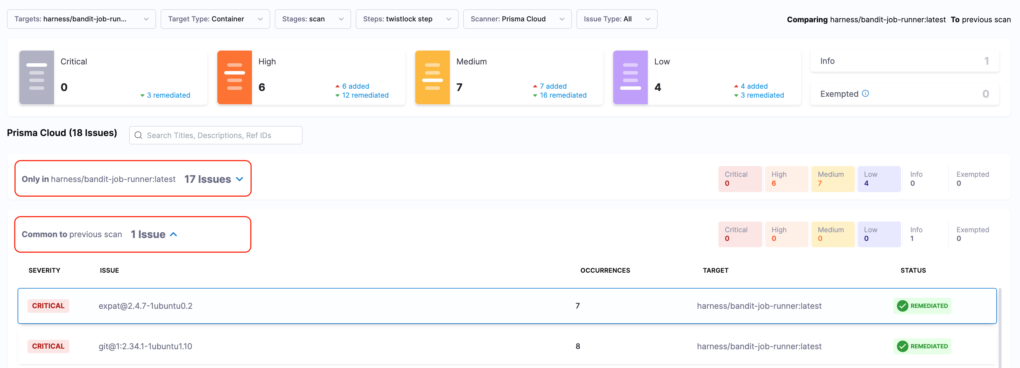 • Remediation: Steps from Harness AI and Scanner (see Fix security issues using Harness AI).