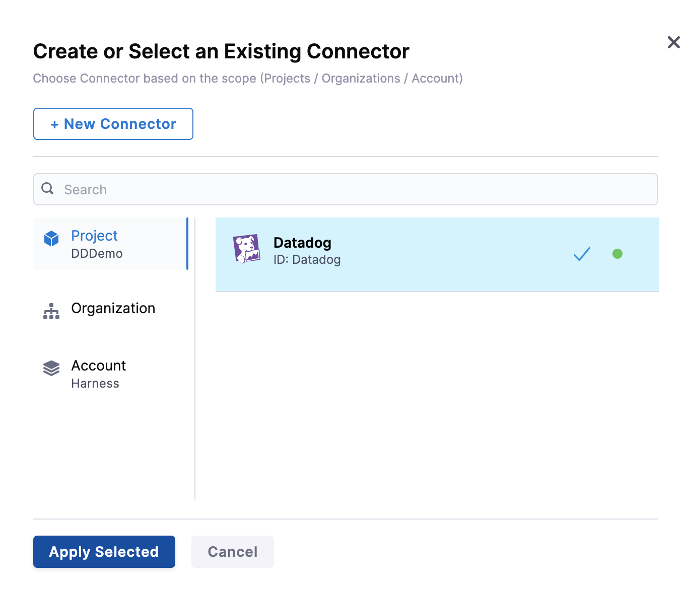 In Connector settings, you can either choose an existing connector or click New Connector.