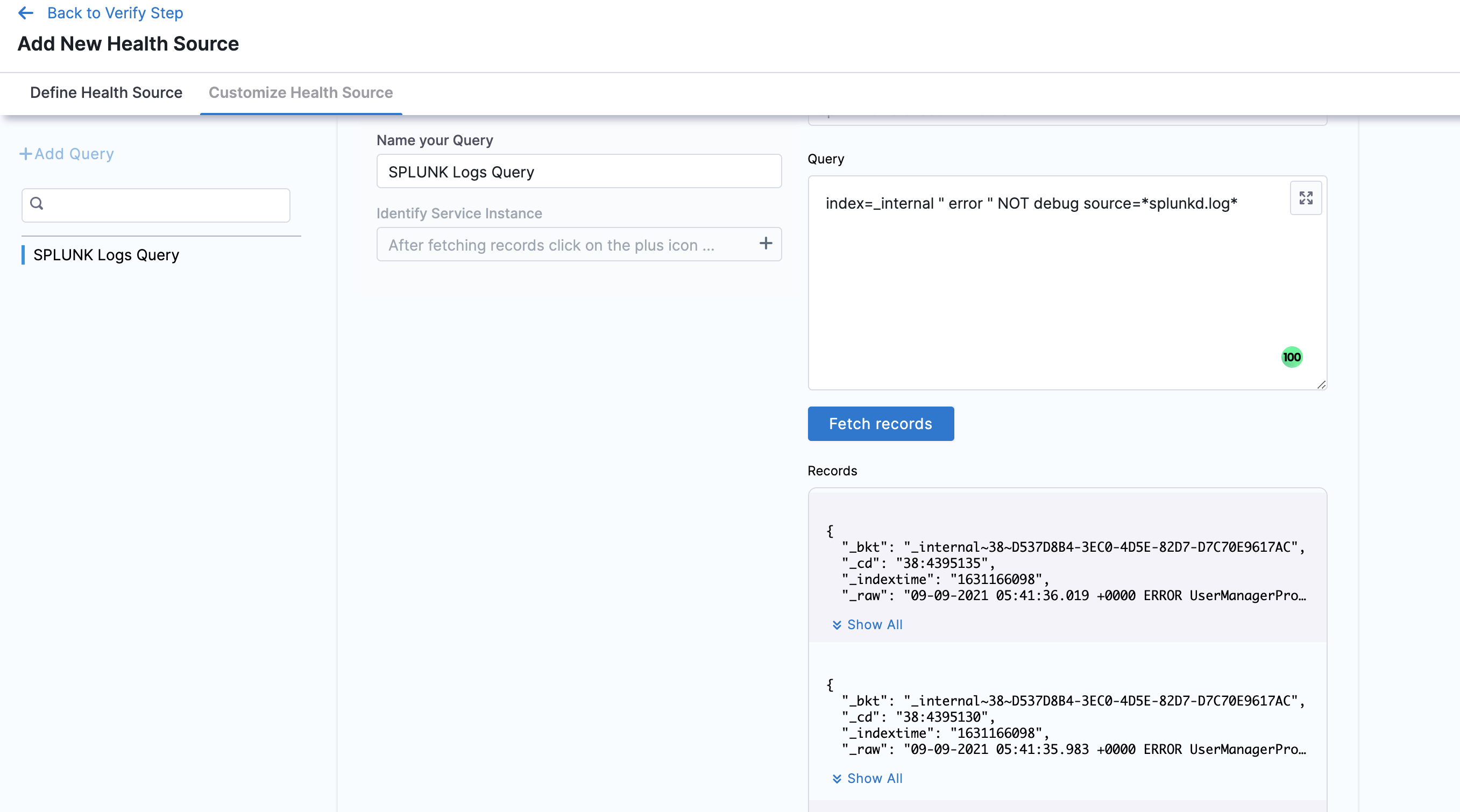 Click Fetch Records to retrieve the details. The results are displayed under Records.