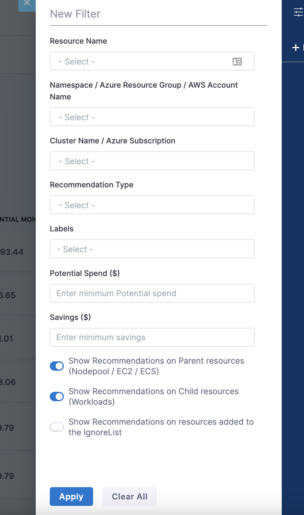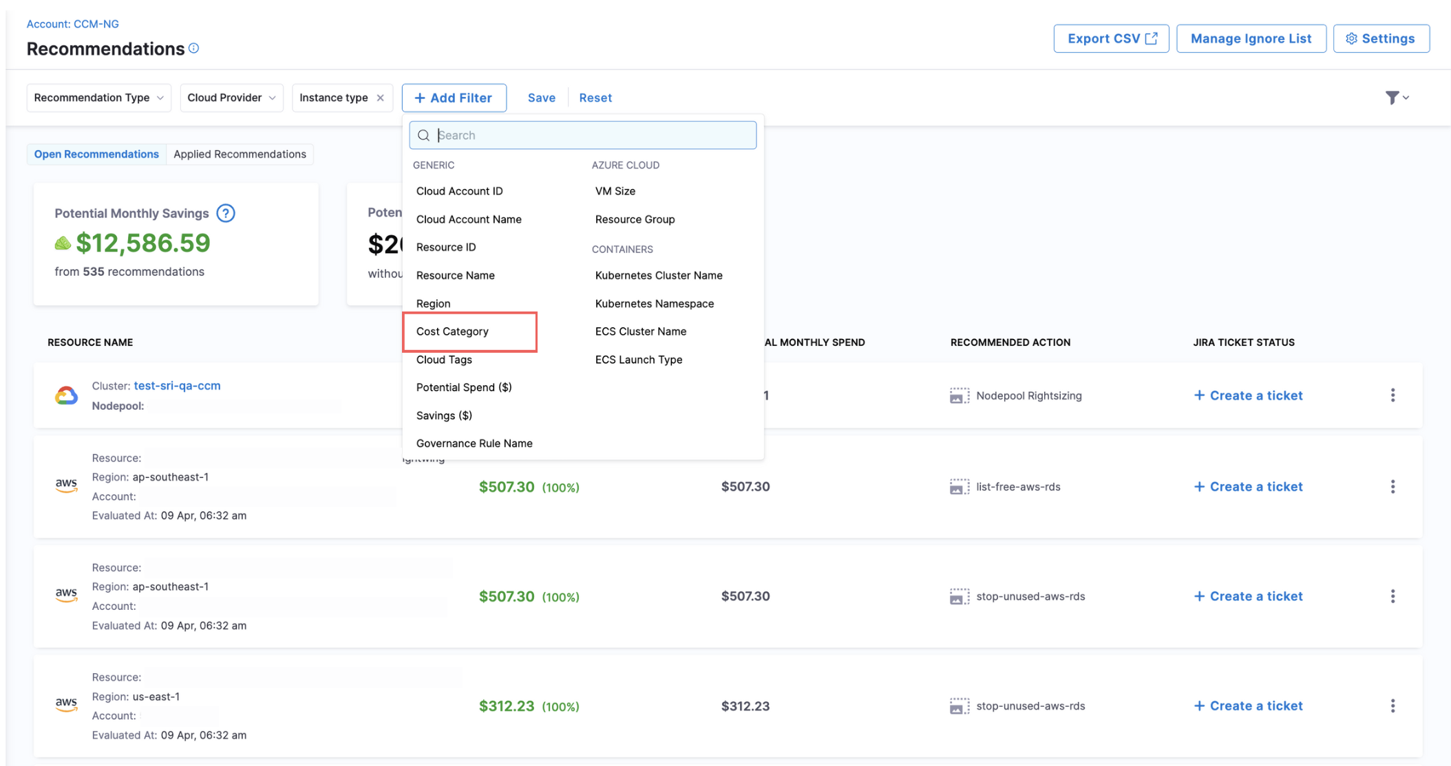 - Azure Resource Group Filtering: Added support for filtering recommendations by Azure Resource Group, aligning with Perspectives functionality and enabling more targeted cost optimization strategies. [CCM-25175]
