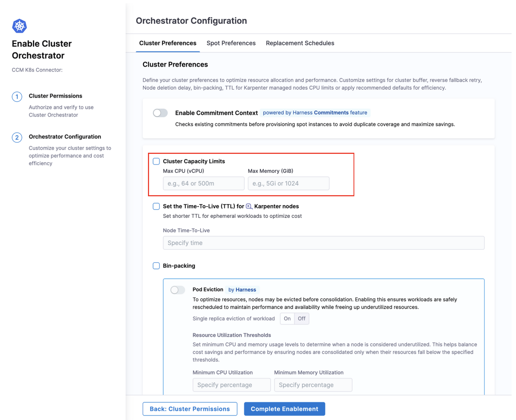 Bin Packing Notification Enhancement: If Bin Packing is disabled for a cluster within the Cluster Orchestrator, a notification banner and confirmation dialogue will appear upon saving, indicating that “Bin Packing must be enabled for cluster scale-down and optimal node utilisation.” [CCM-25324]
