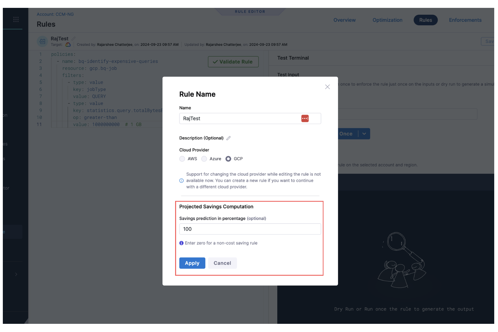 - Dynamic ON → The system evaluates cost category rules dynamically at query time. This approach is best suited for testing scenarios where you want to understand how changes in rule definitions impact cost attribution. Please note that performance may vary based on the volume of cost data and the selected time range; in some cases, evaluations may be slower.